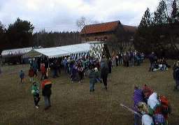 Markan drog lite folk men det är inte konstigt att korv o kaffe går bäst en sån här